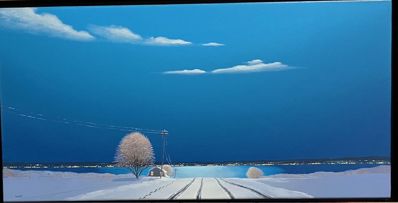 PAQUET, Guy Quand les arbres tardent à se dévêtir, la première neige le fait pour eux... Dimension: 12 x 24 $ 2800.00+tx. |
