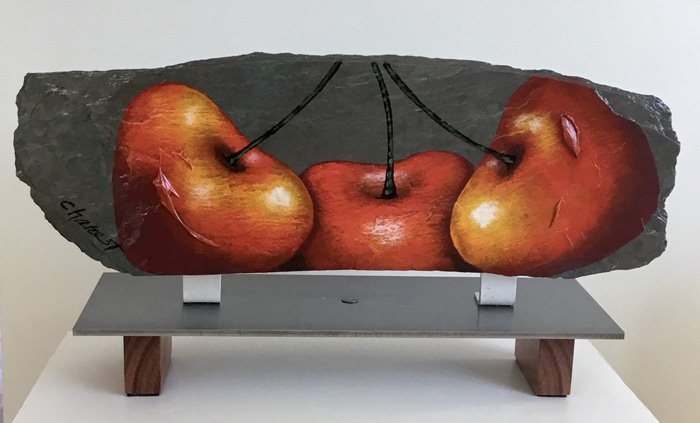 CHAREST, Gilles Double jeu Dimension: 16 x 6 ardoise/base bois *pièce unique* Price: $ 1000.00+tx.